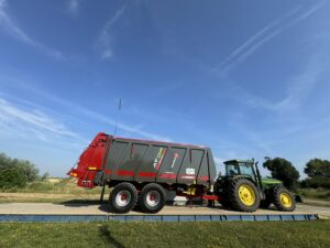 Trzy poziome wały rozrzucające o szerokości 230 cm rozrzucają obornik na szerokość 15m (ustawienie na 540 obrotów) oraz 30 m (przy ustawieniu na 1000 obrotów). Przy rozrzucaniu np: wapna doskonale sprawdzają się dwa dolne talerze rozrzucające o grubości 15 mm.